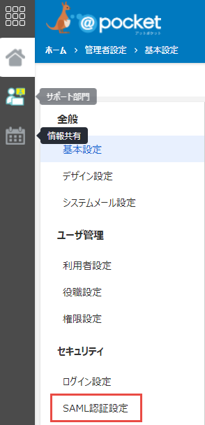 @pocketの設定項目 設定内容 SAML認証の利用 有効 SAML認証の利用を必須にする 無効