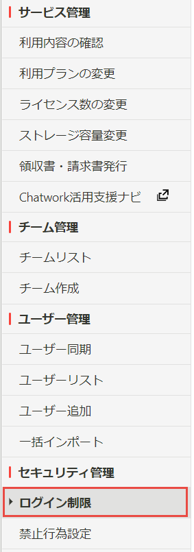 Chatworkの設定項目 設定内容 専用ログインURL設定を行う 専用のログインURLのパス情報 任意の文字列 -