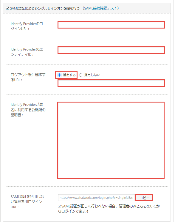 ChatworkのSAML認証設定