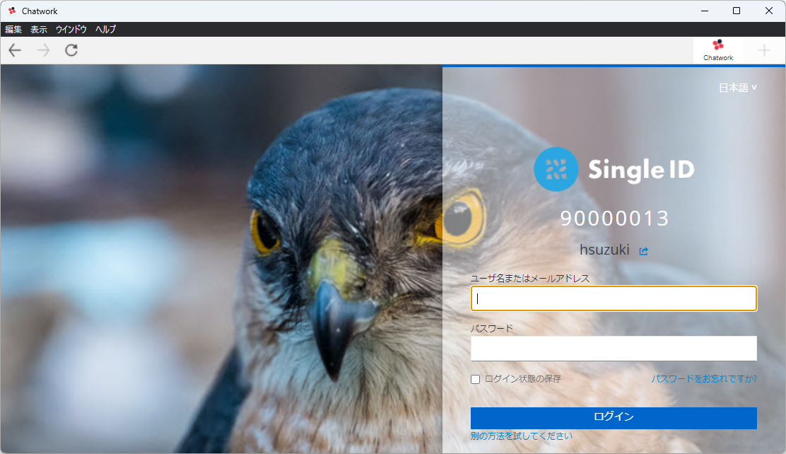 Chatworkのデスクトップ版アプリからのログイン