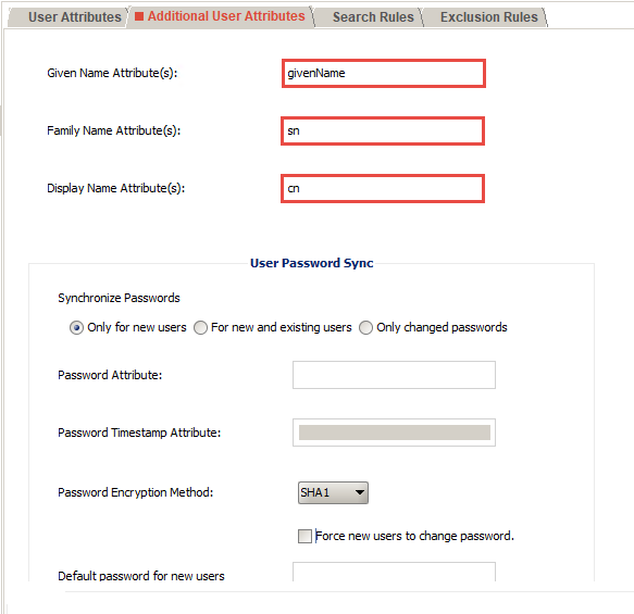 Additional User Attributesタブ画面へ移動します。