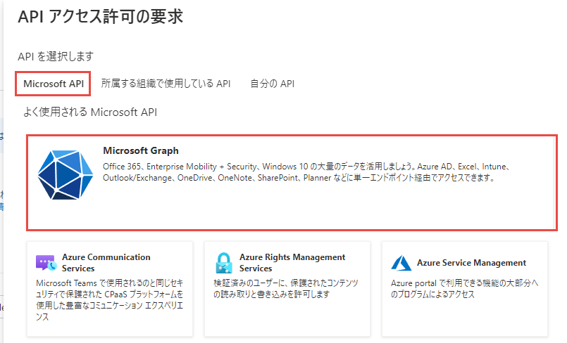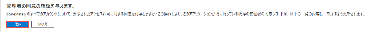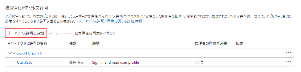 追加したアクセス許可が一覧に表示されたことを確認し、管理者の同意を与えますボタンをクリックします。