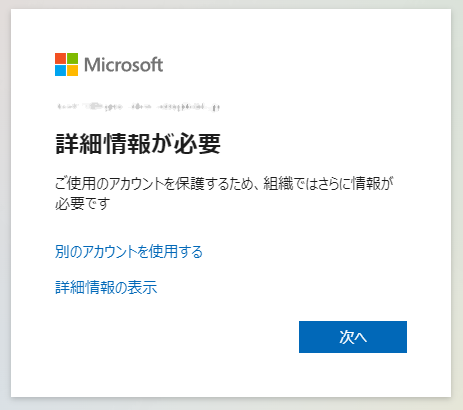 M365のログイン画面で、詳細情報が必要の画面が表示された場合