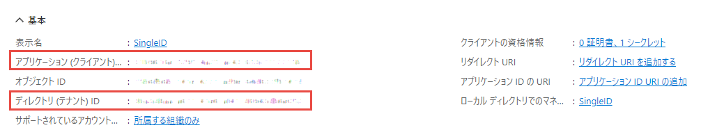 アプリケーション (クライアント) ID、ディレクトリ (テナント) IDは、PIO-IDのアプリ登録のプロビジョニング設定で必要となります。値をコピーして、保存しておきます。