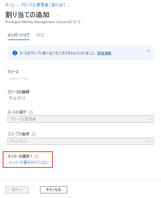 メンバーの選択で、メンバーが選択されてないをクリックします。