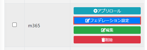 登録したアプリの列にあるフェデレーション設定ボタンをクリックします。