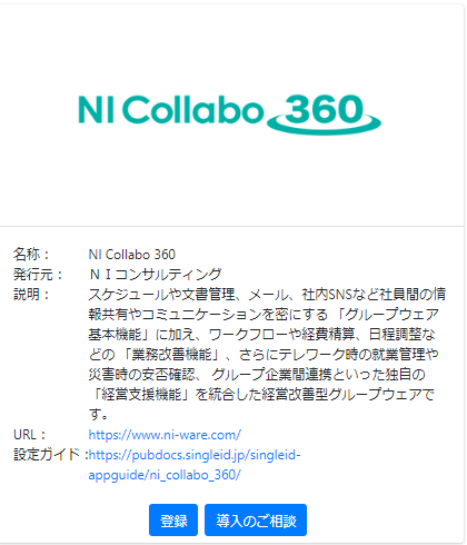 アプリカタログが表示されるので、NI Collabo 360の登録ボタンをクリックします。