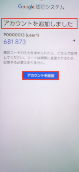 ソフトウェアトークンの6桁の数字の表示は、30秒ごとに変わります。変わる前に、オーセンティケーターの登録を完了させる必要があります。登録する途中で、ソフトウェアトークンの数字が変わってしまった場合には、変わった数字を登録します。