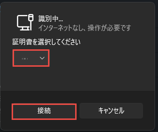 認証で使用するPIO-IDのユーザ(参照)のクライアント証明書を選択し、接続ボタンをクリックします。