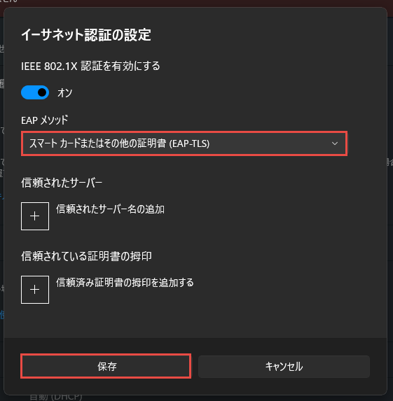 ネットワーク接続の認証(EAP-TLS方式のクライアント証明書認証)