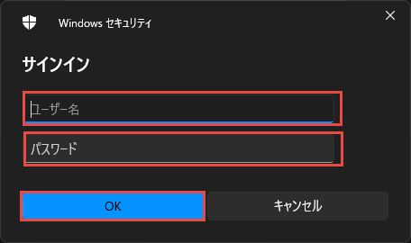 PIO-IDのユーザ参照の認証情報を入力し、OKボタンをクリックします。